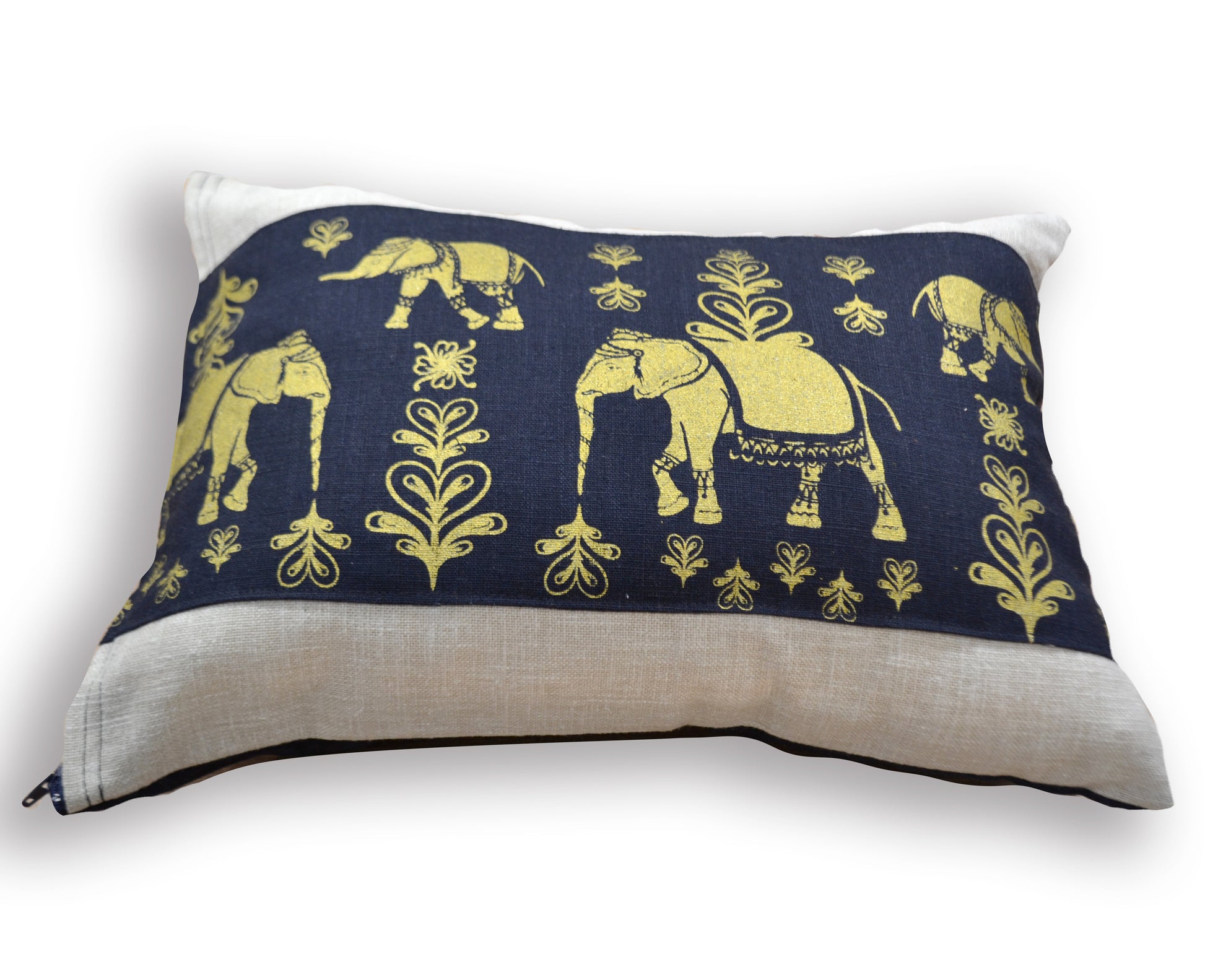 Housse de coussin 30x40 cm en édition limitée, motif éléphant dessiné et imprimé en sérigraphie artisanale par Graphy Flora.